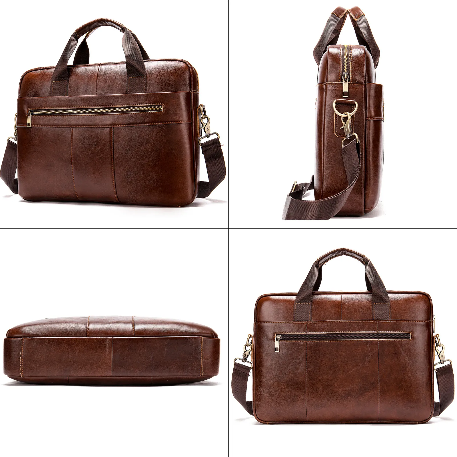 Men's Leather Briefcase Business Men's Bag First Layer Cowhide Portable