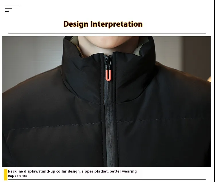 Men's Leisure Warm Windproof Zipped Stand Collar Winter Cotton-padded Jacket