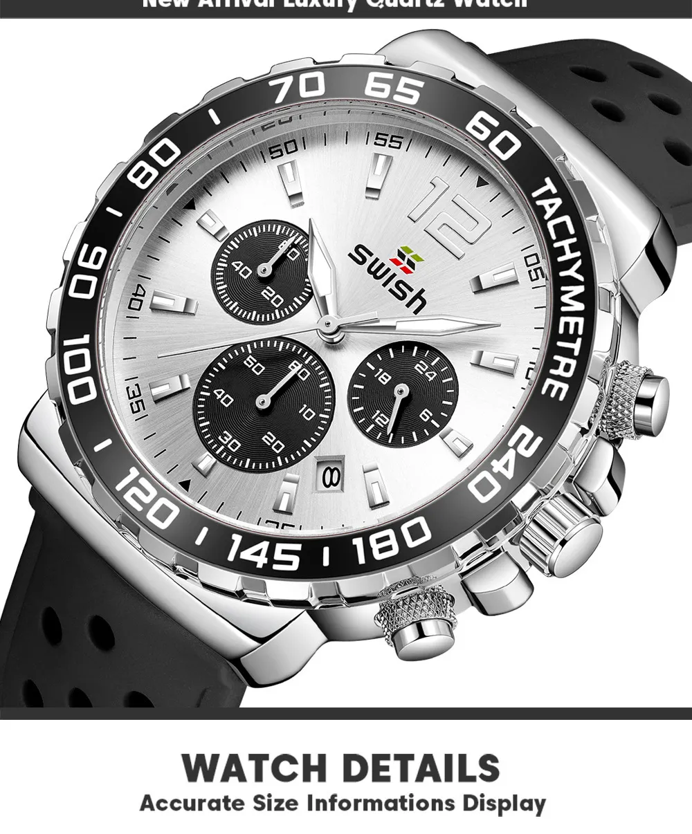 The Men's Luminous Sports Breathable Hole Silicone Strap Six-Pin Quartz Watch is the perfect companion for men who live an active lifestyle