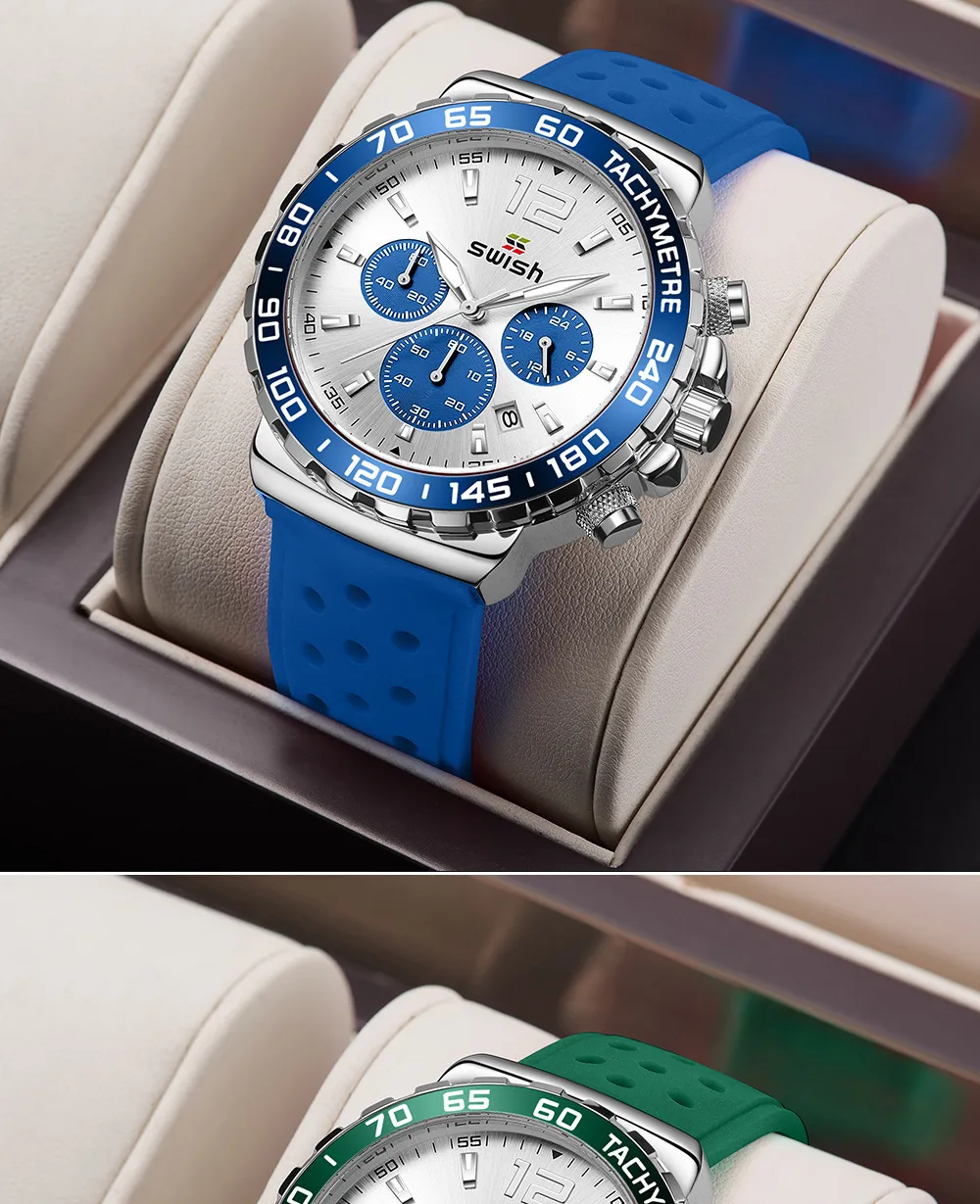 The Men's Luminous Sports Breathable Hole Silicone Strap Six-Pin Quartz Watch is the perfect companion for men who live an active lifestyle