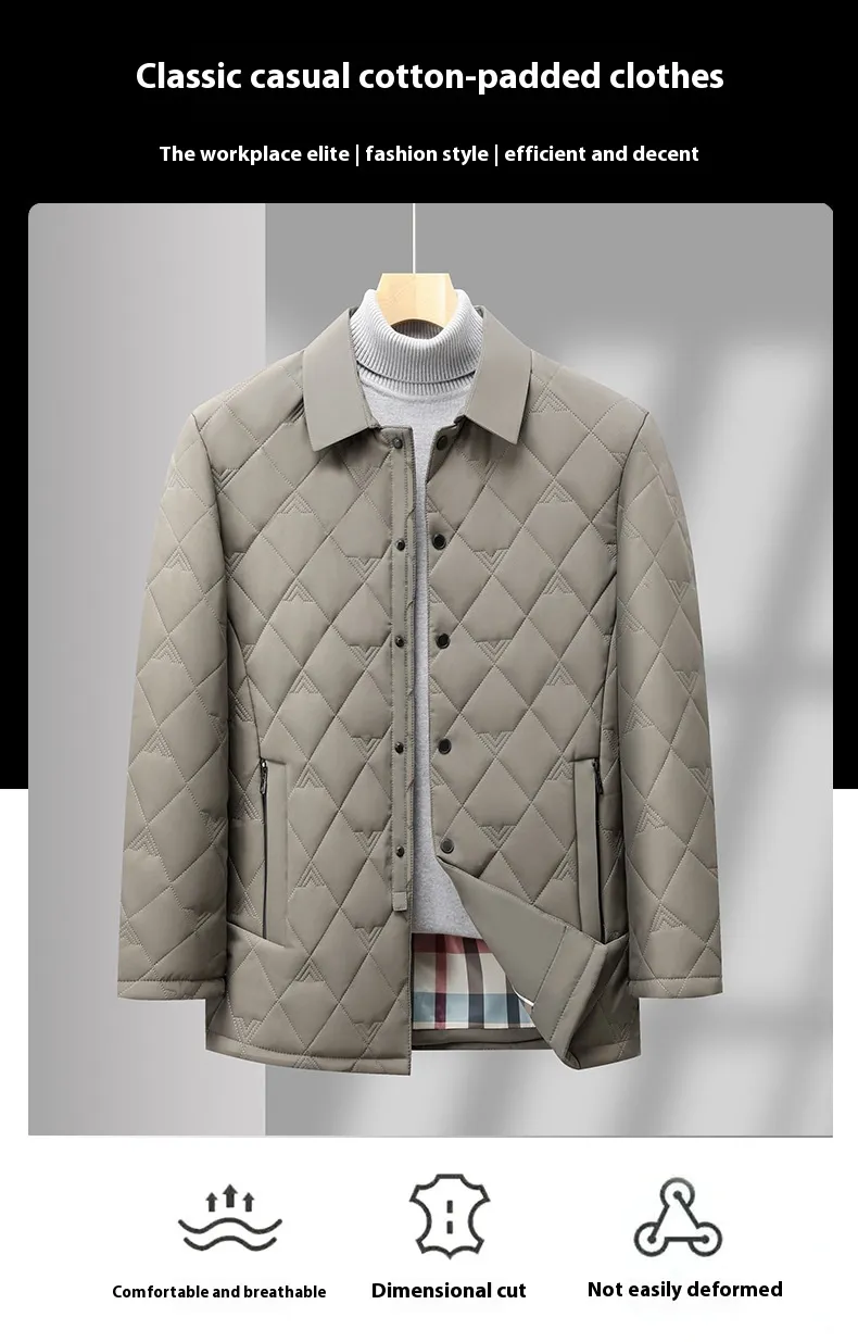Men's Middle-aged Cotton Padded Thickened Workwear Dad Wear Business Lapel Short – Comfort and Style for Every Occasion