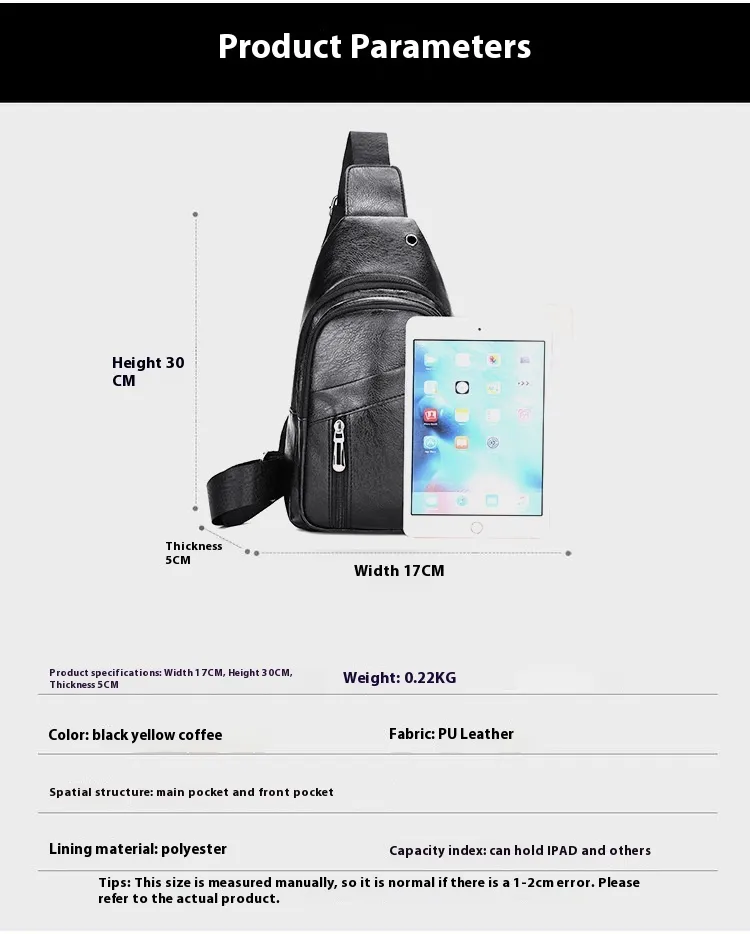 Description – Men's Multi-layer Large Capacity Waterproof PU Crossbody Shoulder Bag