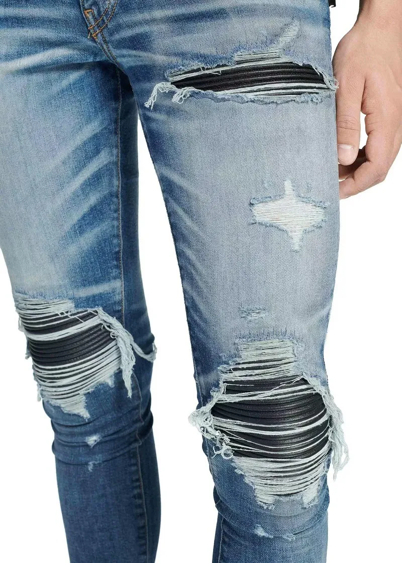 Make a Bold Statement: With their unique patchwork design, men's patched skinny jeans allow you to express