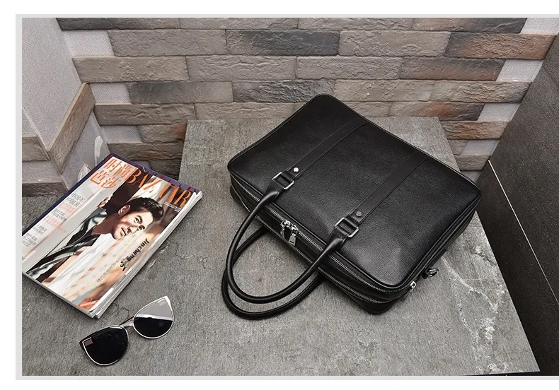 Men's Real-leather Handbag Double Zipper Cattlehide Leather Fashion