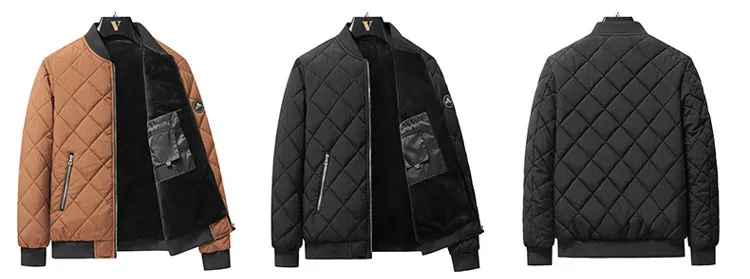 Mens Rhombic-Sewing Cotton Coat Thickened Winter Baseball Jacket with Casual Solid Color Design