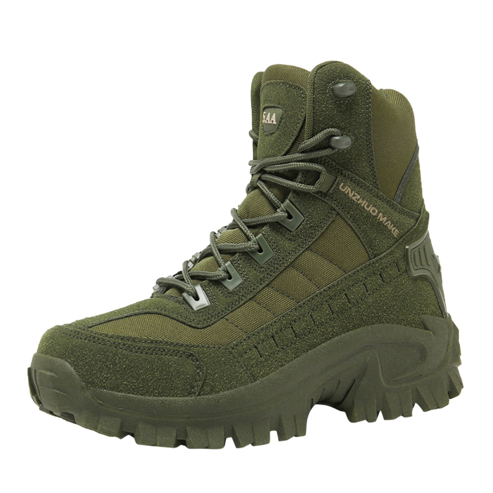 Take on any terrain with the Men's Rugged Solid High Top Military Hiking Shoes, built for durability, comfort, and outdoor performance. These high-top shoes are designed to withstand tough environments, making them ideal for hiking, military-style training, or any outdoor adventure. The quick-on side zipper allows for easy wear, while the lace-up front ensures a secure and customizable fit for optimal comfort and support.