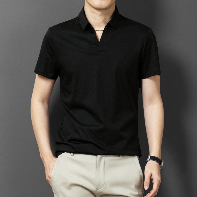 Redefine your casual style with our Men's Short Sleeve T-Shirt featuring a unique scissor collar. This innovative design adds a modern twist