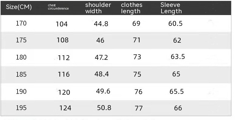 Size: 170,175,180,185,190,195