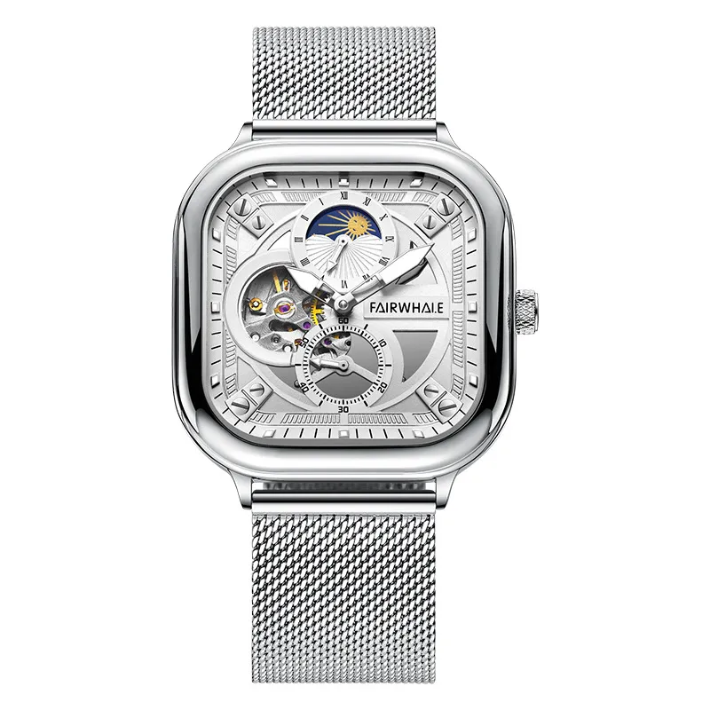 The stainless steel case offers strength, resistance to rust, and a polished finish that ensures long-lasting durability and luxurious appeal. It keeps the internal components protected while giving the watch a sleek, stylish appearance.