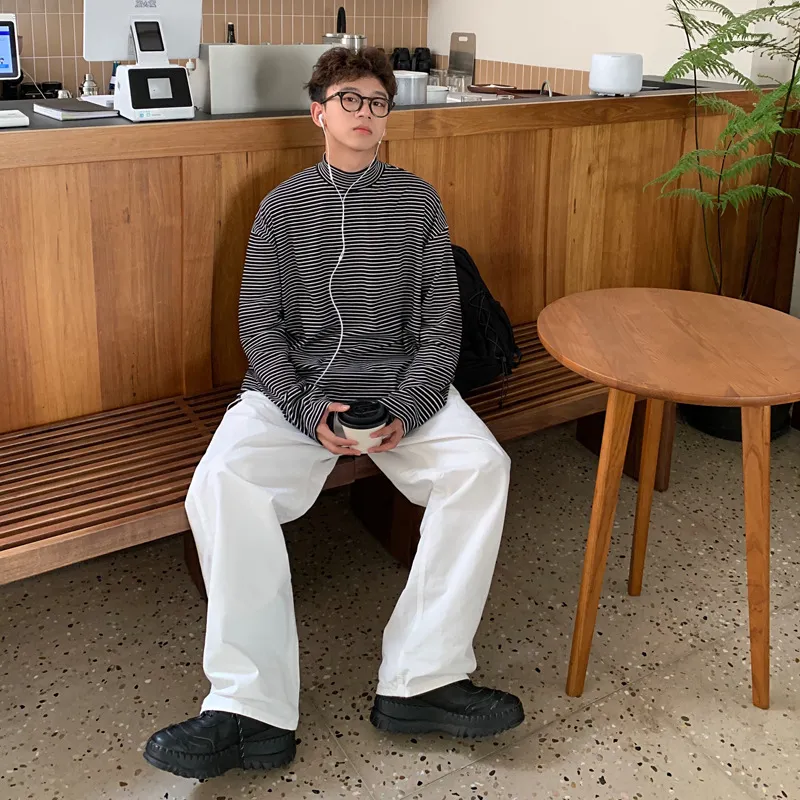 The Men's Turtleneck Long Sleeve T-Shirt is a versatile garment that can be paired with a variety of outfits. Whether you're looking to layer it under a casual jacket, over a pair of jeans, or tuck it into chinos for a refined look, this piece seamlessly transitions from day to night. The minimalist design ensures it matches well with any style, whether it's casual, smart-casual, or even a slightly dressier ensemble.