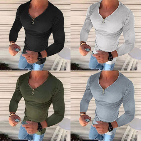 Men's V Neck Long Sleeve Solid Color T-Shirt
