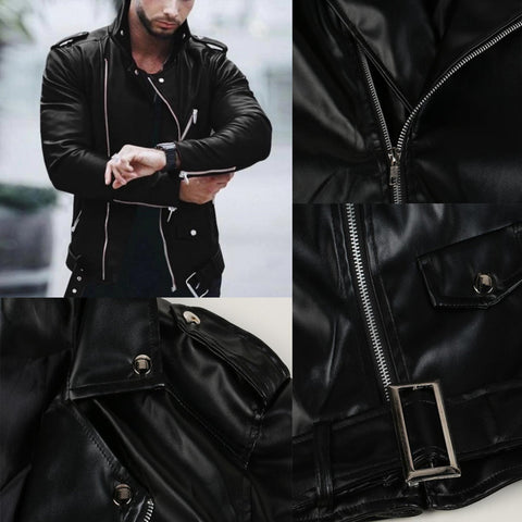Men's Vintage Lapel Zip Biker Leather Jacket
