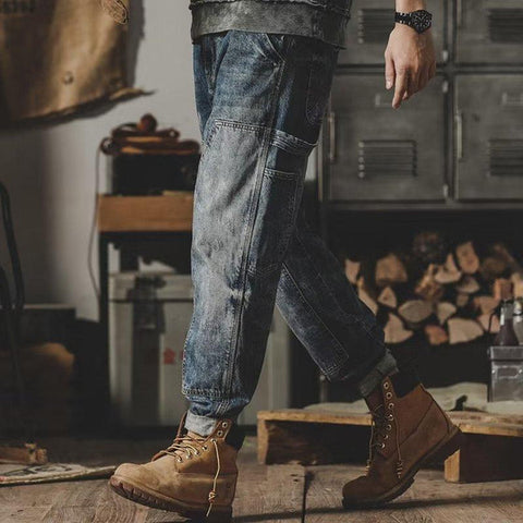 Introducing our Men's Vintage Loose Panel Cargo Jeans, a perfect blend of vintage charm and modern utility. These jeans offer a unique and