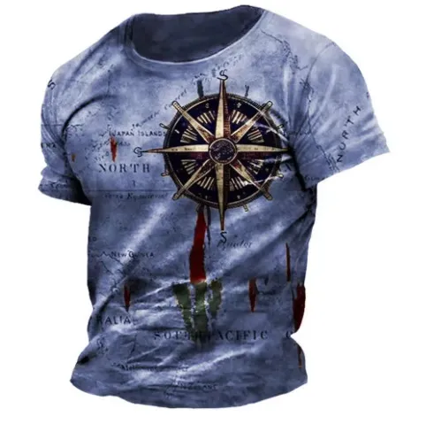 Men's Vintage Nautical Map Compass Printed T-shirt