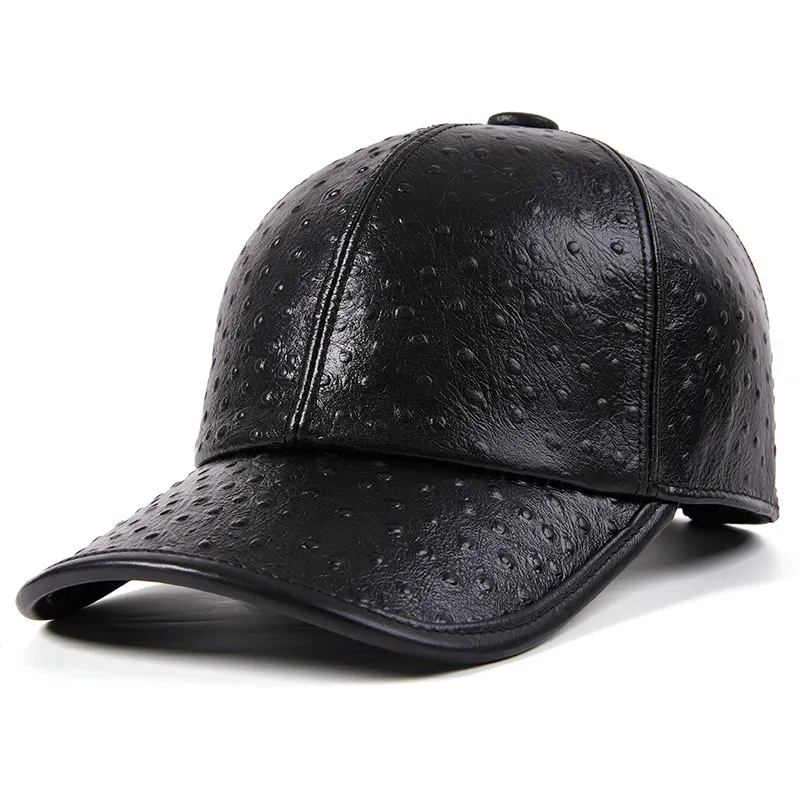 Men's Warm Ostrich Pattern Cowhide Baseball Hat