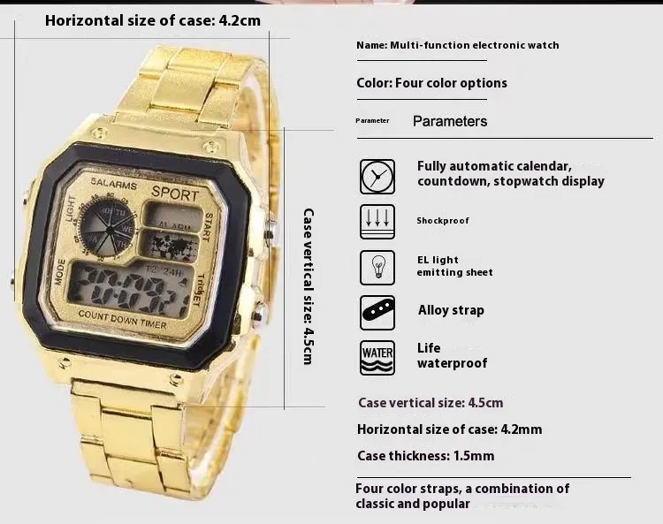 The Men's Watch Fashion Personality LED Luminous often features additional functions such as a date display, stopwatch,