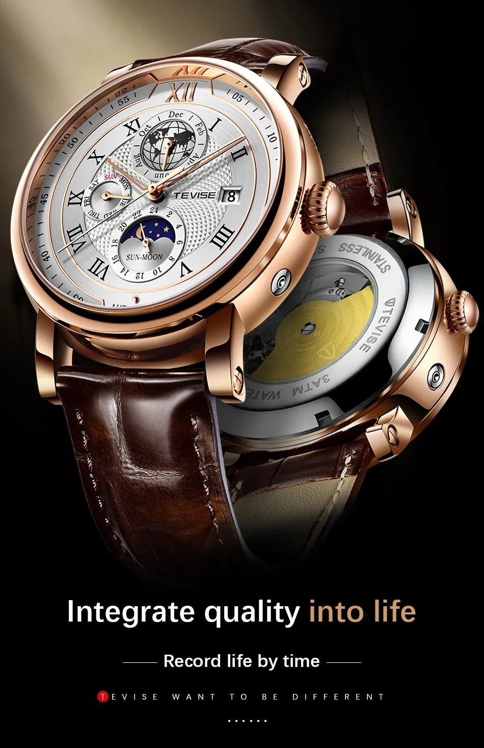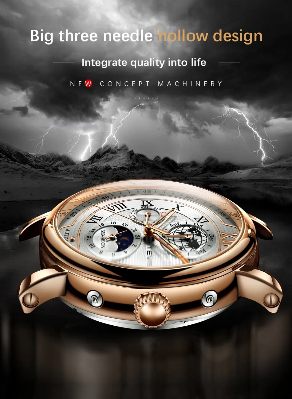 come.With water resistance up to 5 ATM, the Men’s Waterproof Moon Phase Automatic Mechanical Watch is built to withstand rain, splashes,