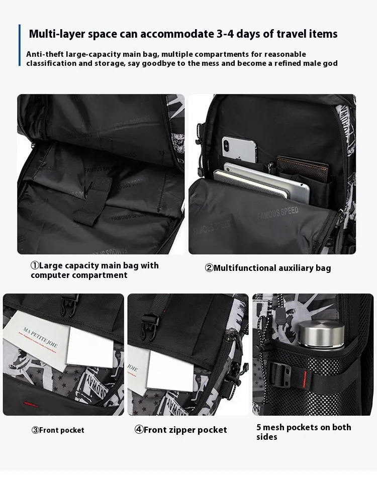 The Men's Waterproof Oxford Cloth Backpack isn’t just for hiking—it’s perfect for traveling, commuting, or everyday use. Its sleek and modern design suits both urban environments and outdoor excursions, making it a versatile addition to your gear collection. Whether you're heading to work or hitting the trails, this backpack has you covered.