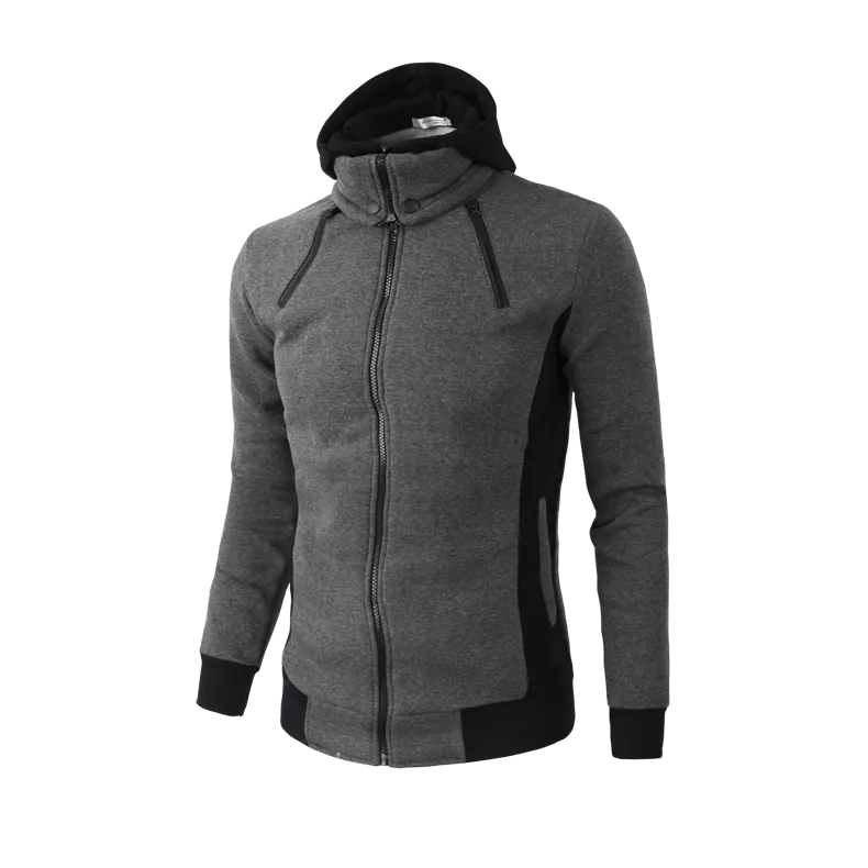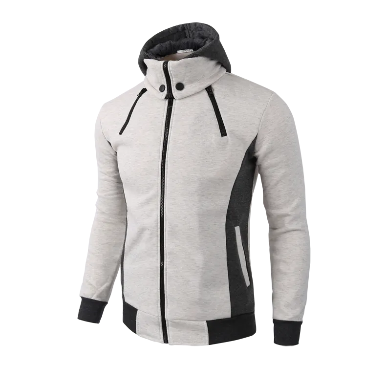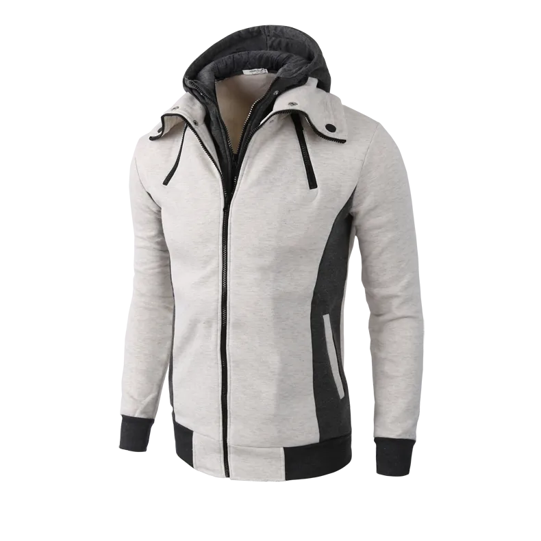 Men's Zip UP Hooded Jacket Fake Two Piece Sports Cardigan Casual Slim Sweatshirt Jacket