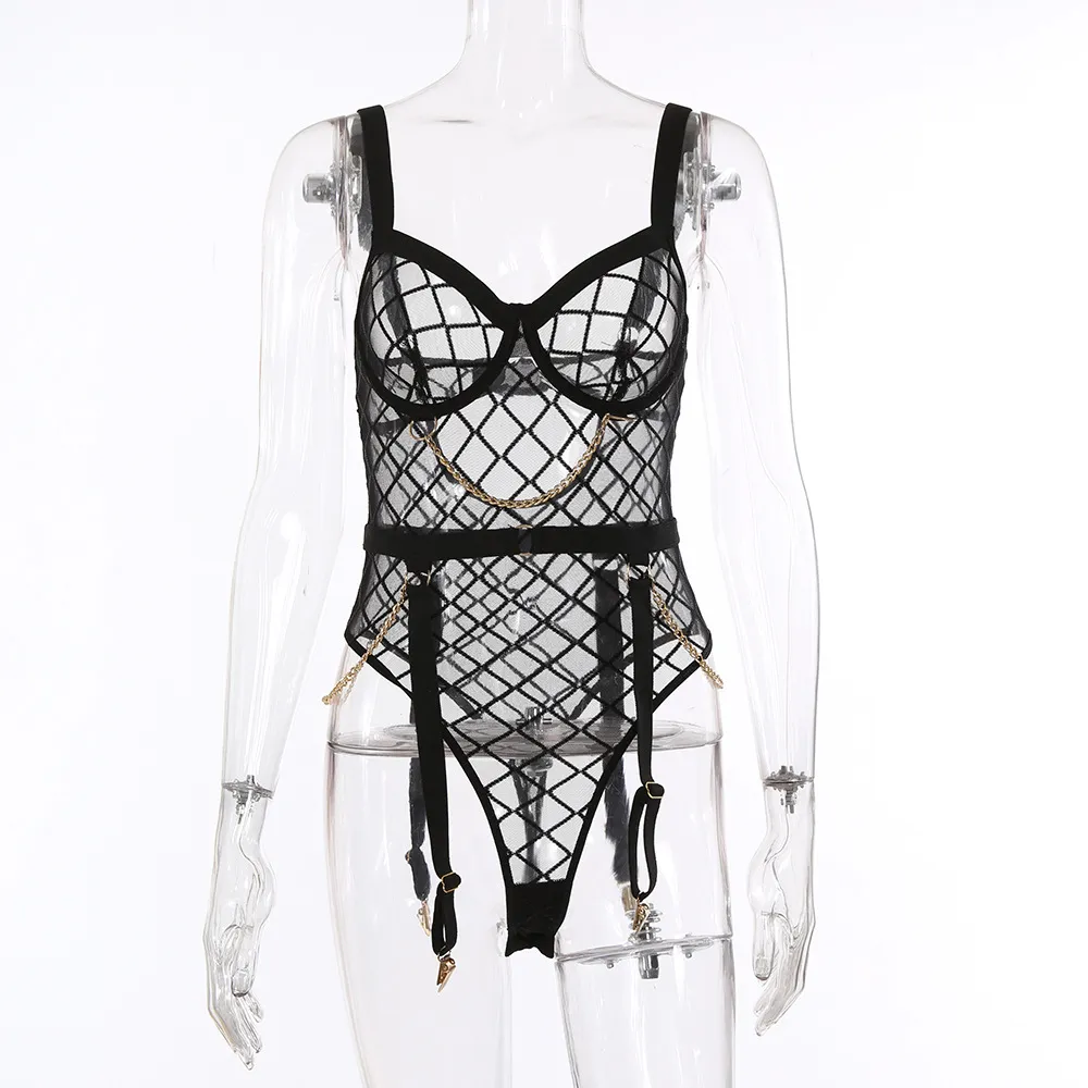 Mesh See-Through Underwear Metal Chain Set: Bold, Sexy, and Alluring