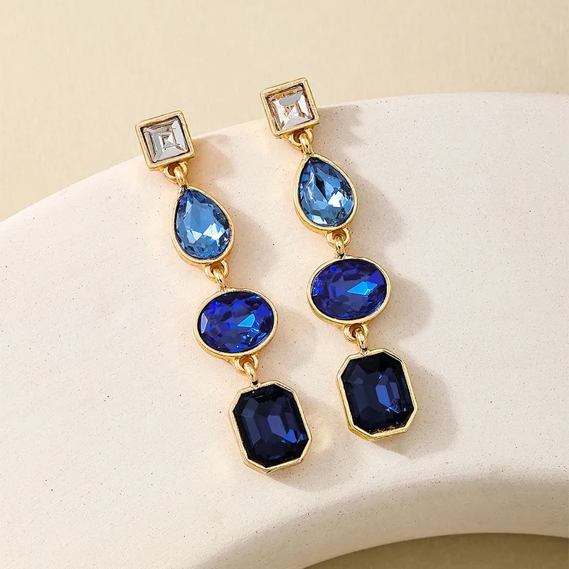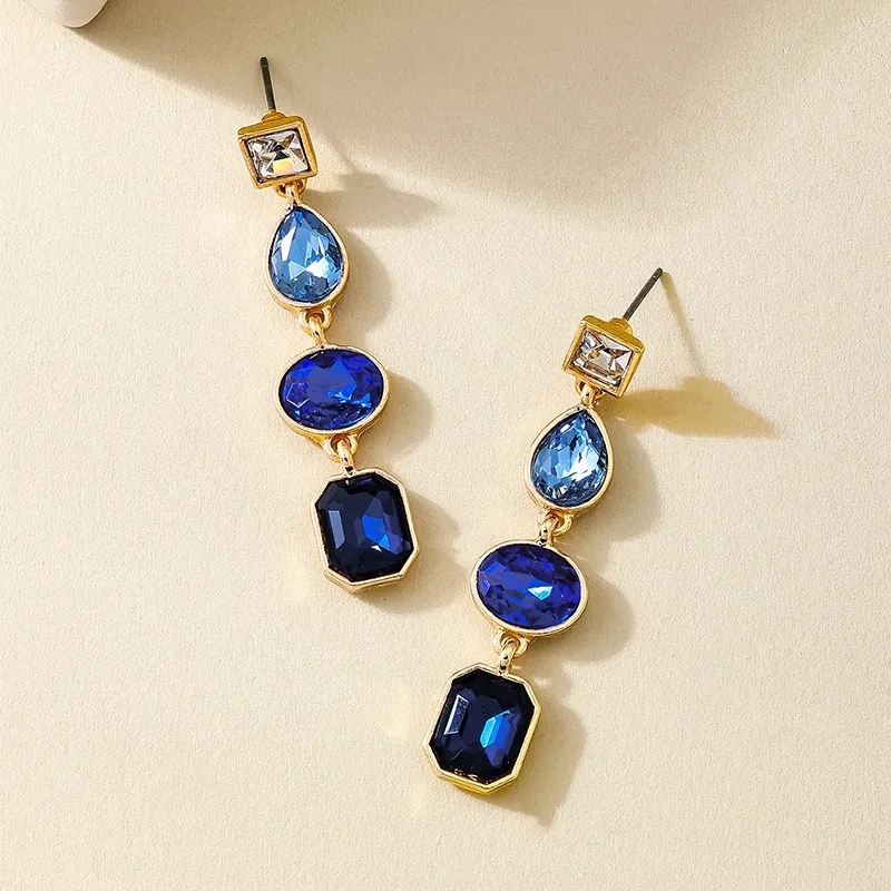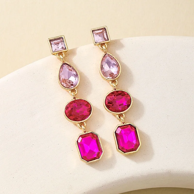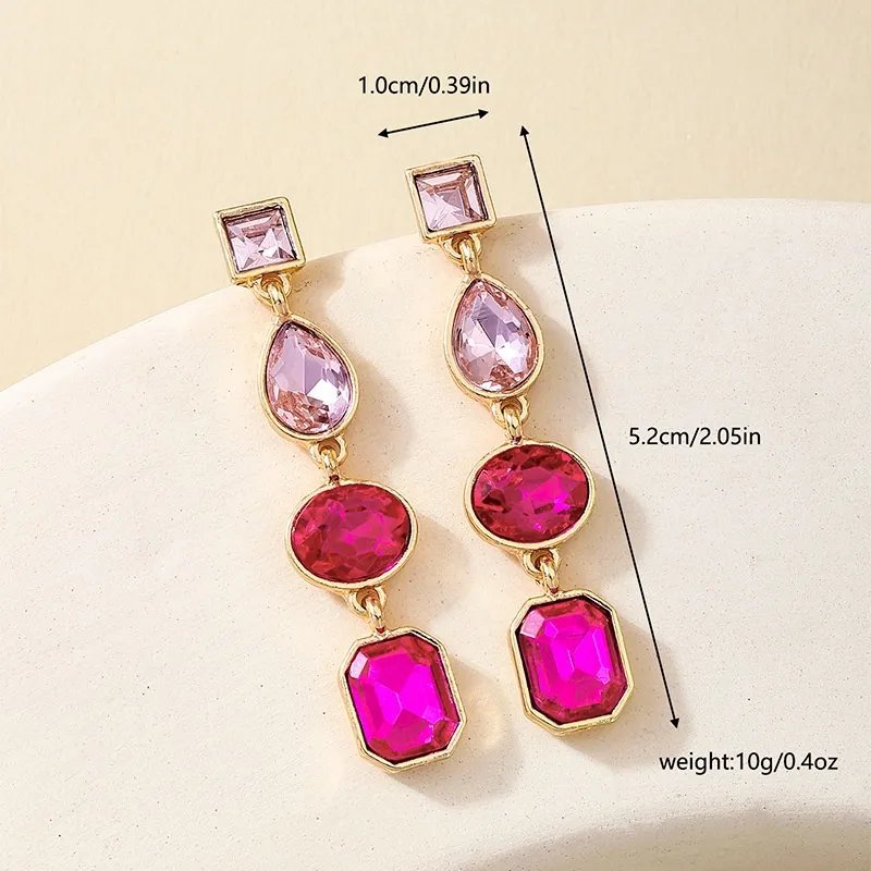 Metal Color Rhinestone Ear Studs Female Geometric Water Drop