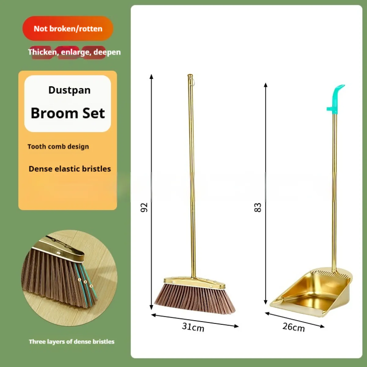 Effective and Efficient: The combination of a rubber-edged dustpan and strong-bristled brush ensures that you collect more