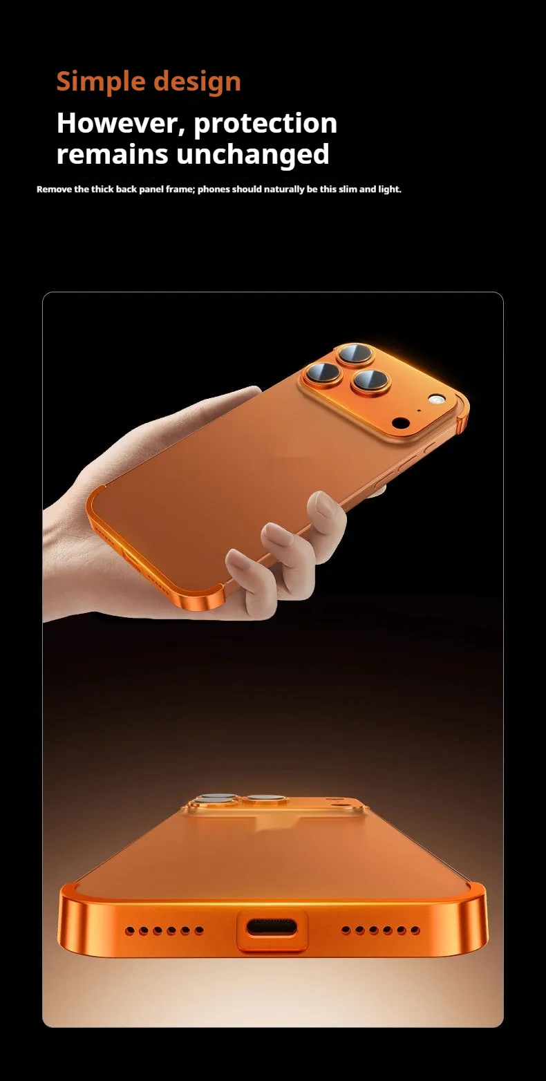 Protect your iPhone in style with the Metal Four-Corner Pad Ultra-Thin Frameless Lens Protective Cover – slim, strong, and stylish.