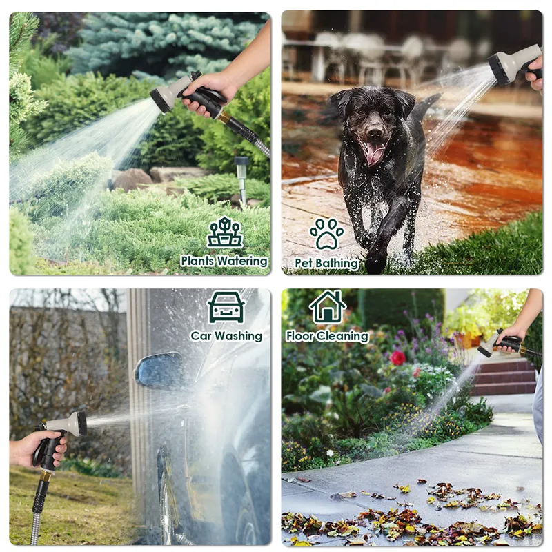 This hose comes equipped with a 10-pattern adjustable spray nozzle, giving you precise control over the water flow for various applications, such as watering plants, washing cars, cleaning patios, or bathing pets. The different spray modes include options like mist, shower, jet, and full, allowing you to switch effortlessly between tasks. The ergonomic handle provides comfort and ease of use, making gardening and cleaning tasks less strenuous.