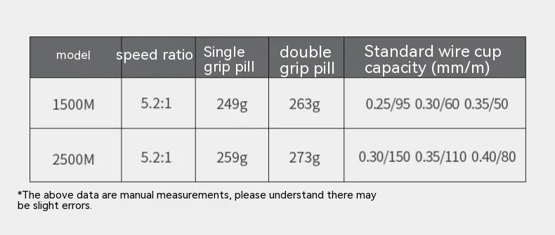 Specifications: LC1500M single-grip pills (no gap lure shallow cup),LC2500M single-grip pills (no gap lure shallow cup),LC1500MS double-grip