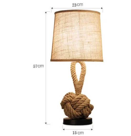 Metal Table Lamp American Retro Bedroom Fabric Craft Hemp Rope