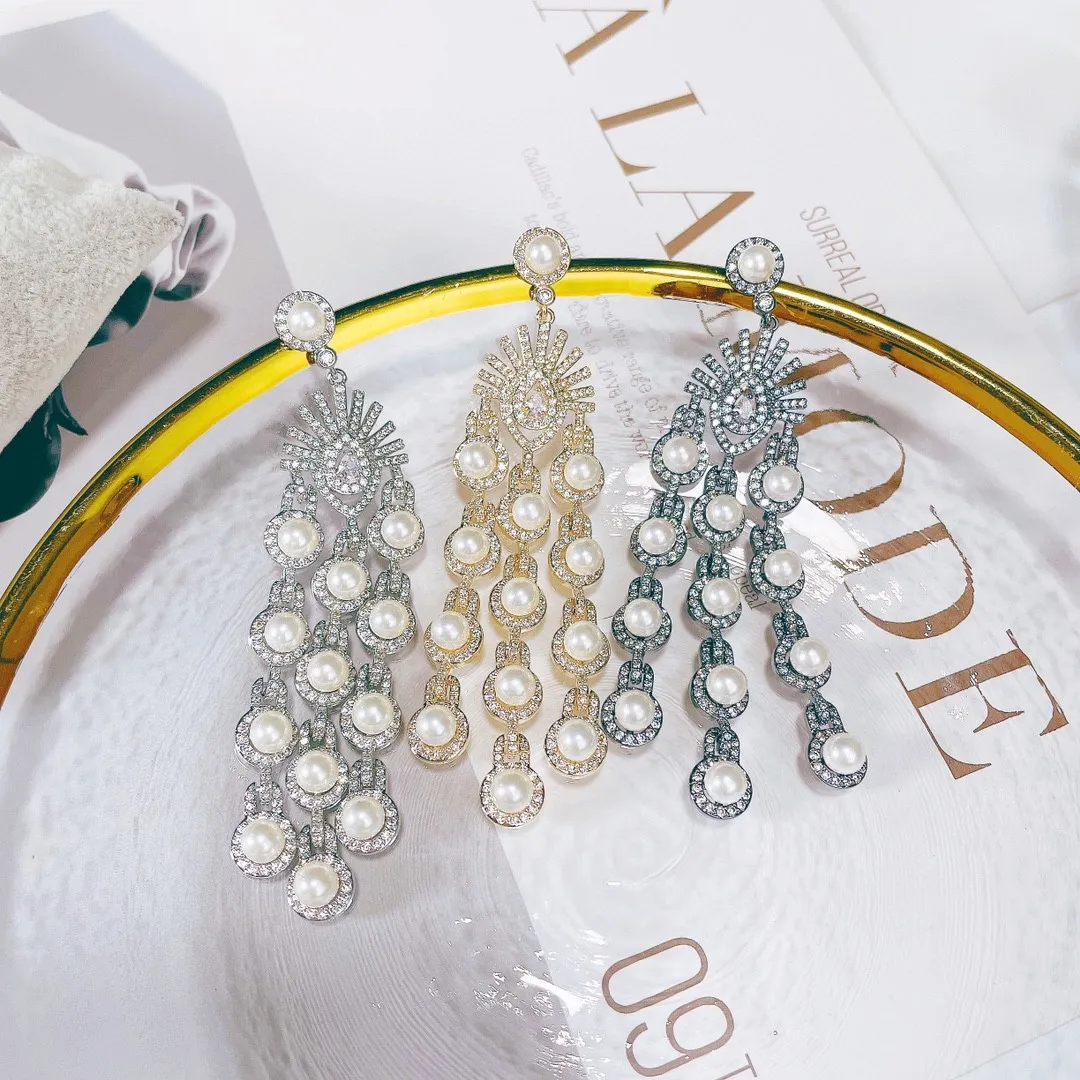 The standout feature of these earrings is the micro inlay zircon technique, which ensures each stone is perfectly placed for maximum brilliance. The small, individually set zircon stones reflect light beautifully, offering a dazzling sparkle that catches the eye from every angle. Paired with delicate beaded fringe, these earrings bring an extra level of movement and texture, making them a statement piece for any outfit.
