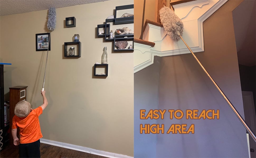 - Extendable Long Pole- With high-quality 100-inch long stainless steel telescopic pole, you don't need to take risks cleaning the high areas anymore, just use this duster for cleaning and extend the length of duster pole from 30 to 100 inches to clean the dust easily.