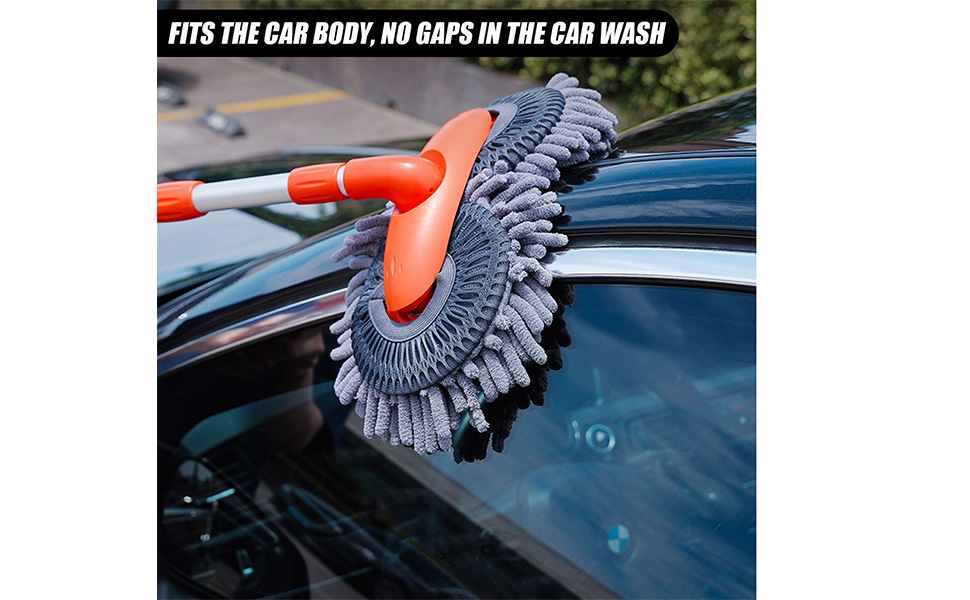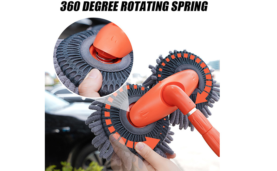 - 𝟑𝟔𝟎° 𝐑𝐎𝐓𝐀𝐓𝐈𝐍𝐆 𝐃𝐄𝐒𝐈𝐆𝐍-This car wash mop brush features 360° rotating that is easy to adjust for any angle. Flexible and effectively clean the corners without any obstruction that is effortless and save lot of cleaning time.