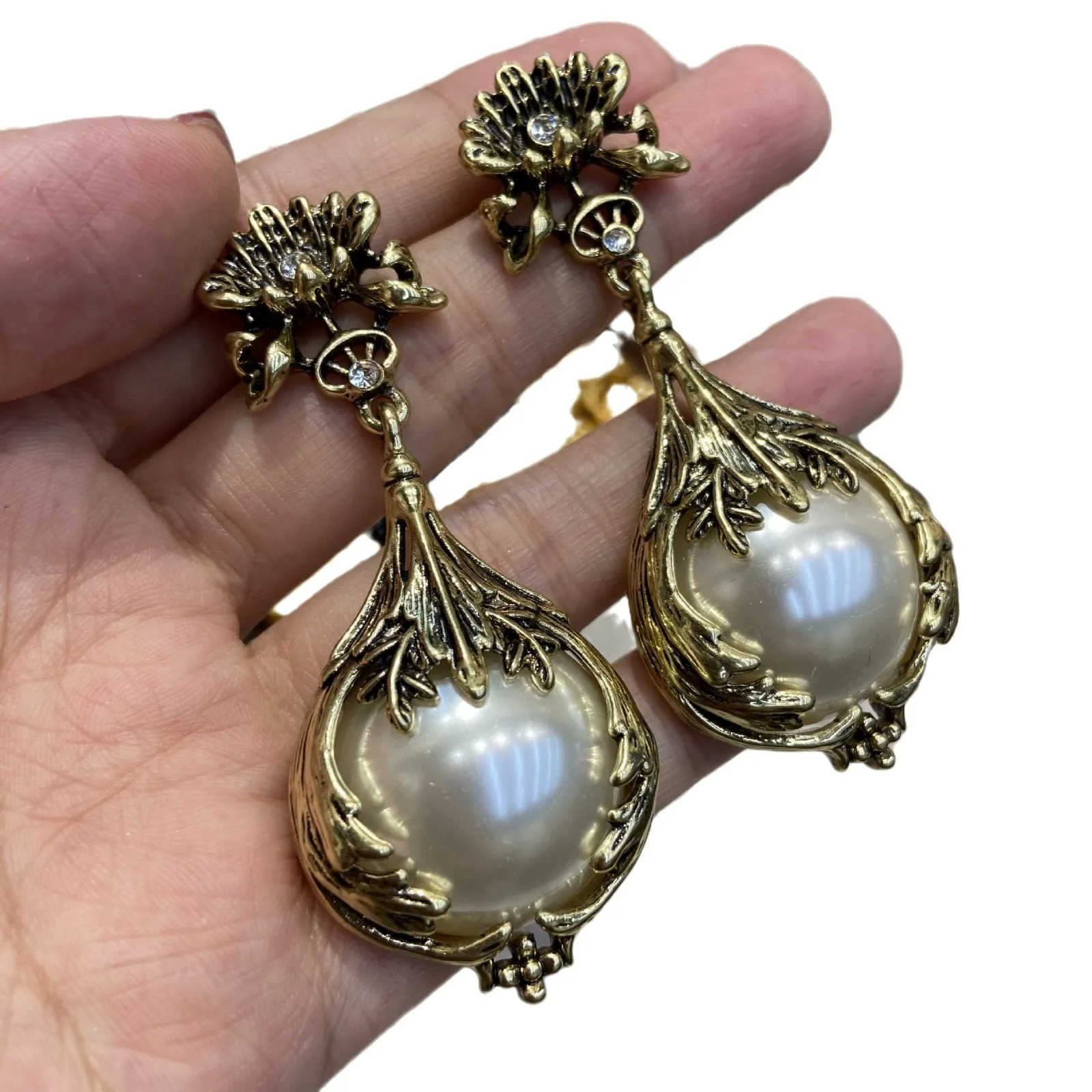 Mid-ancient Vintage Baroque Pearl Rose Earrings
