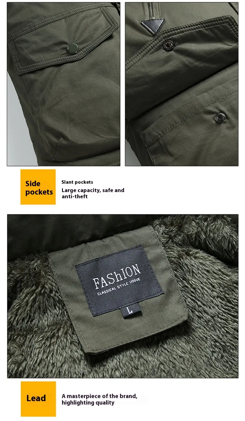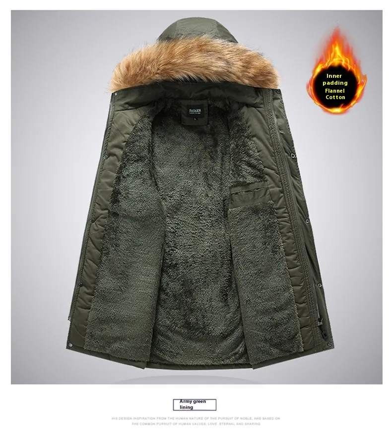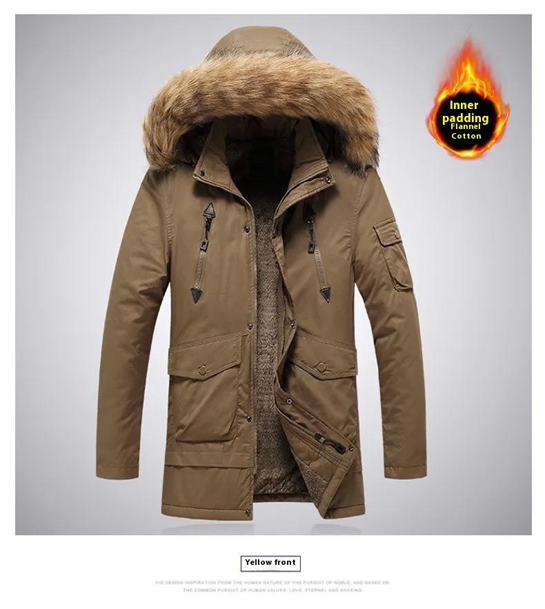 Mid-Length Autumn and Winter Jacket – Men’s Velvet Thermal and Thickened Cotton-Padded Coat