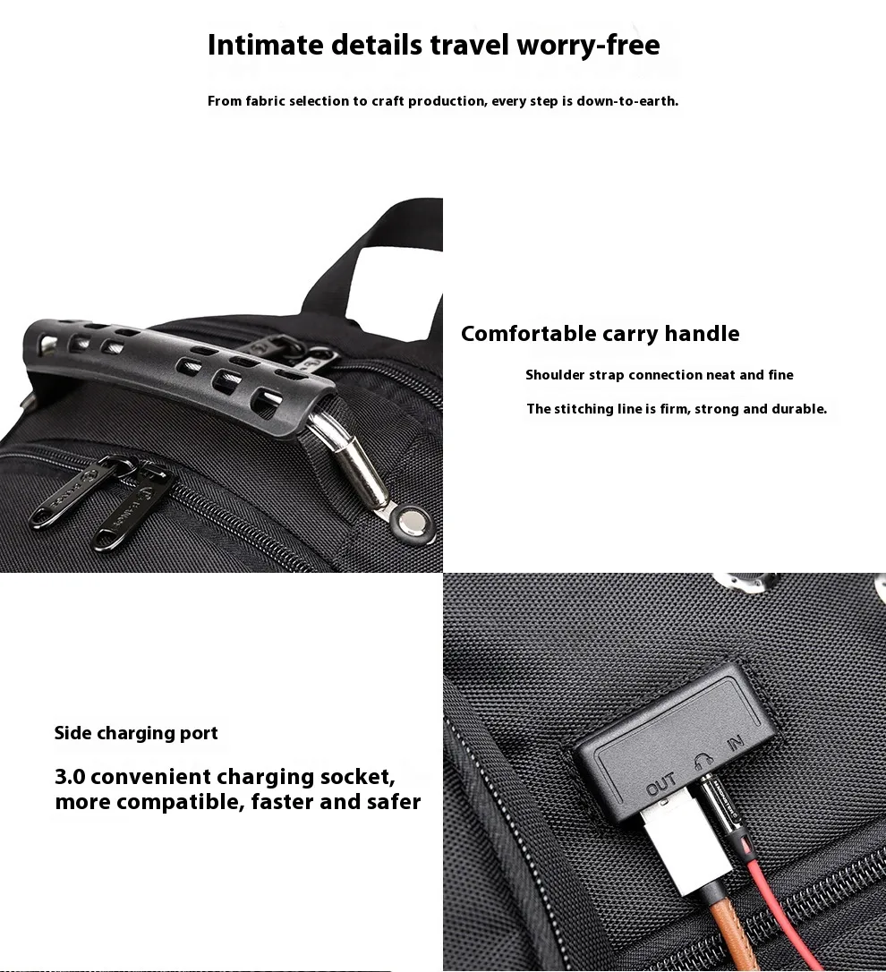 The earplugs hole and USB charging port features make this backpack a great choice for students or busy individuals who are always on the go. These features make it easier to stay connected, organized, and entertained, whether you're at school, commuting, or traveling.