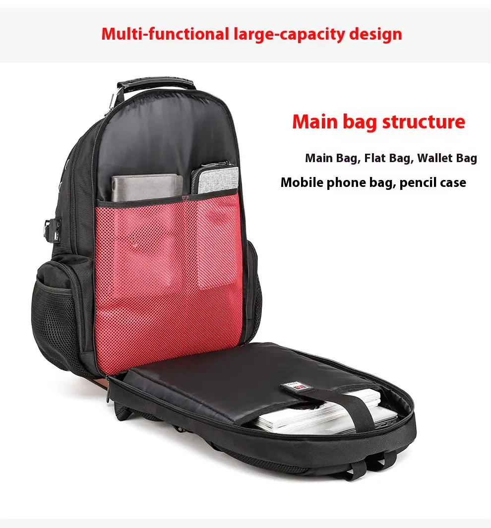 To keep everything in place, the backpack includes several compartments and organizers. There are internal zippered pockets for small items like pens, wallets, and earphones, as well as mesh side pockets for water bottles or umbrellas. The backpack is designed to help you stay organized, so you can find what you need quickly without having to dig through a cluttered bag.