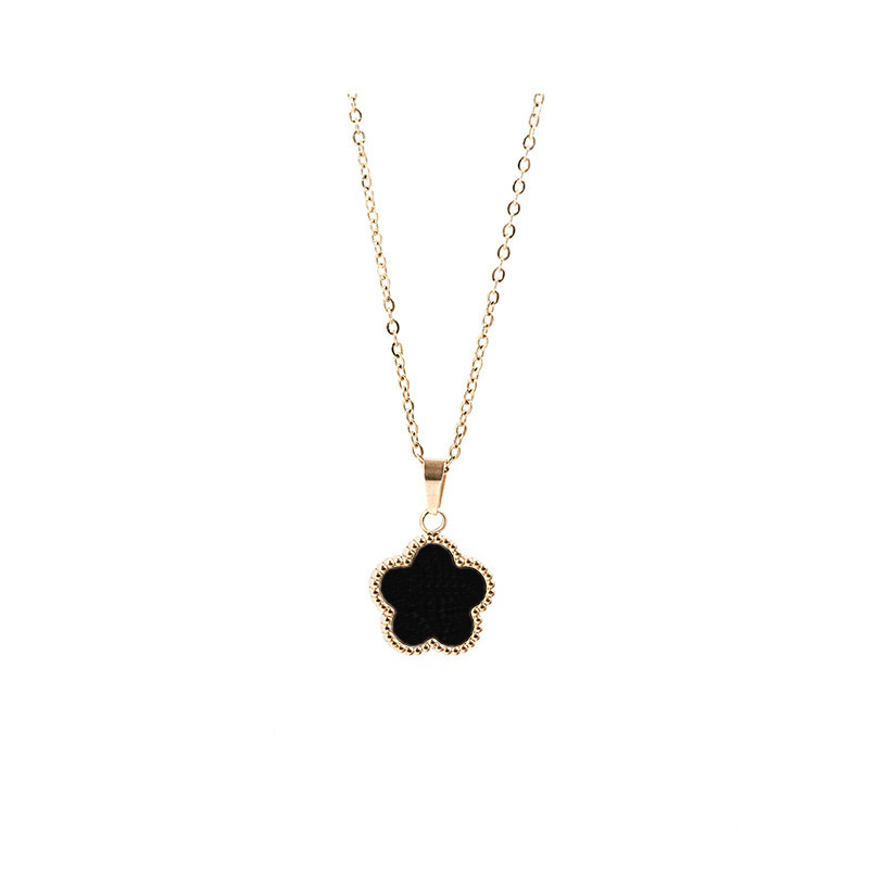 Description: Introducing the Midnight Clover Pendant Necklace, a sophisticated and elegant piece designed to add a touch of timeless beauty to any ensemble. This exquisite necklace features a stunning black clover-shaped pendant, delicately framed with intricate golden beading. The sleek and polished design of the clover pendant exudes a sense of mystery and charm, making it a perfect accessory for both casual and formal occasions.