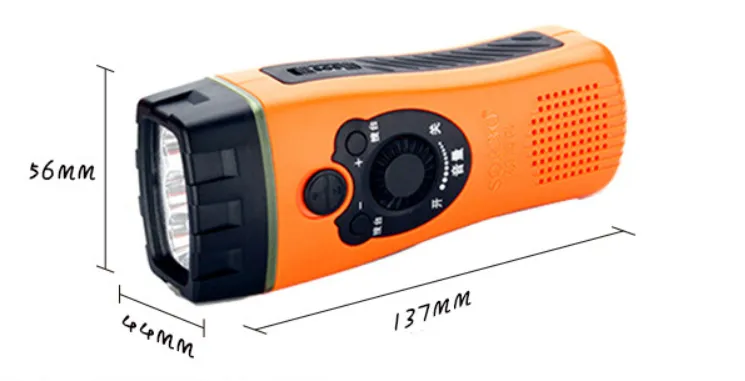 - Rechargeable and Multiple Power Sources: Includes solar panel, hand crank, and USB charging.