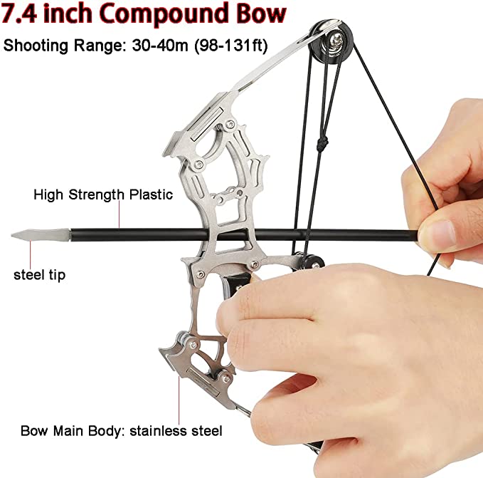 【Portable】: The mini compound bow can be carried around not only to fire the attached professional arrows, but even to take the materials in