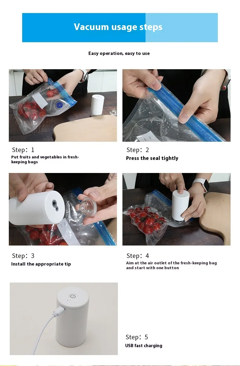 The Mini Food Vacuum Machine Dual-use Air Small Household is the ultimate tool for extending the freshness of your food while saving space in your kitchen. Its versatile features, easy operation, and compact design make it perfect for homes of all sizes. Whether you’re meal prepping, storing leftovers, or preserving bulk purchases, this vacuum machine ensures that your food stays fresh, saving you money and reducing waste. Invest in the Mini Food Vacuum Machine for a smarter, more efficient way to store your food and valuables.