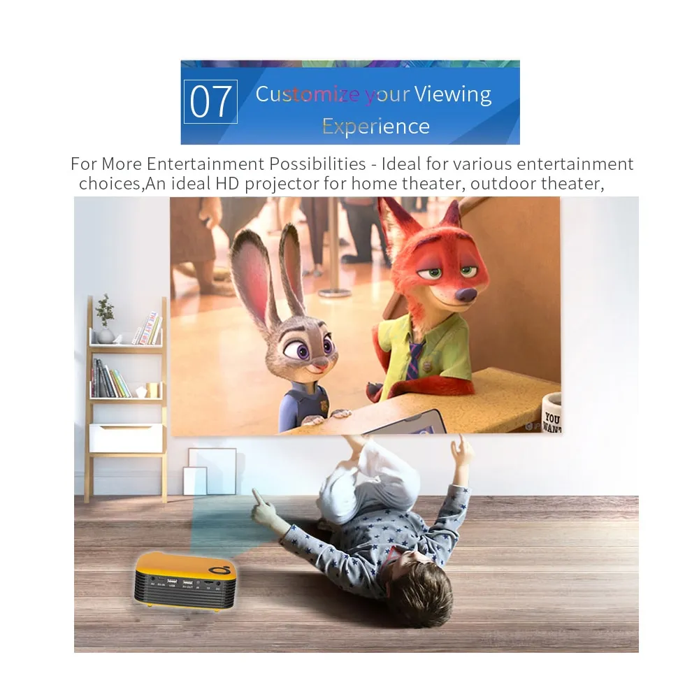 In conclusion, the Mini Portable Projector is the perfect addition to your entertainment setup, offering high-quality 1080p LCD resolution, 800 Lumens brightness, and eye-care technology in a compact design. With 50,000 hours of lamp life, you’ll enjoy years of crisp visuals and immersion in movies, games, and presentations. Whether for home cinema, gaming, or outdoor use, this projector delivers a premium experience with easy portability and eye-comfortable viewing.