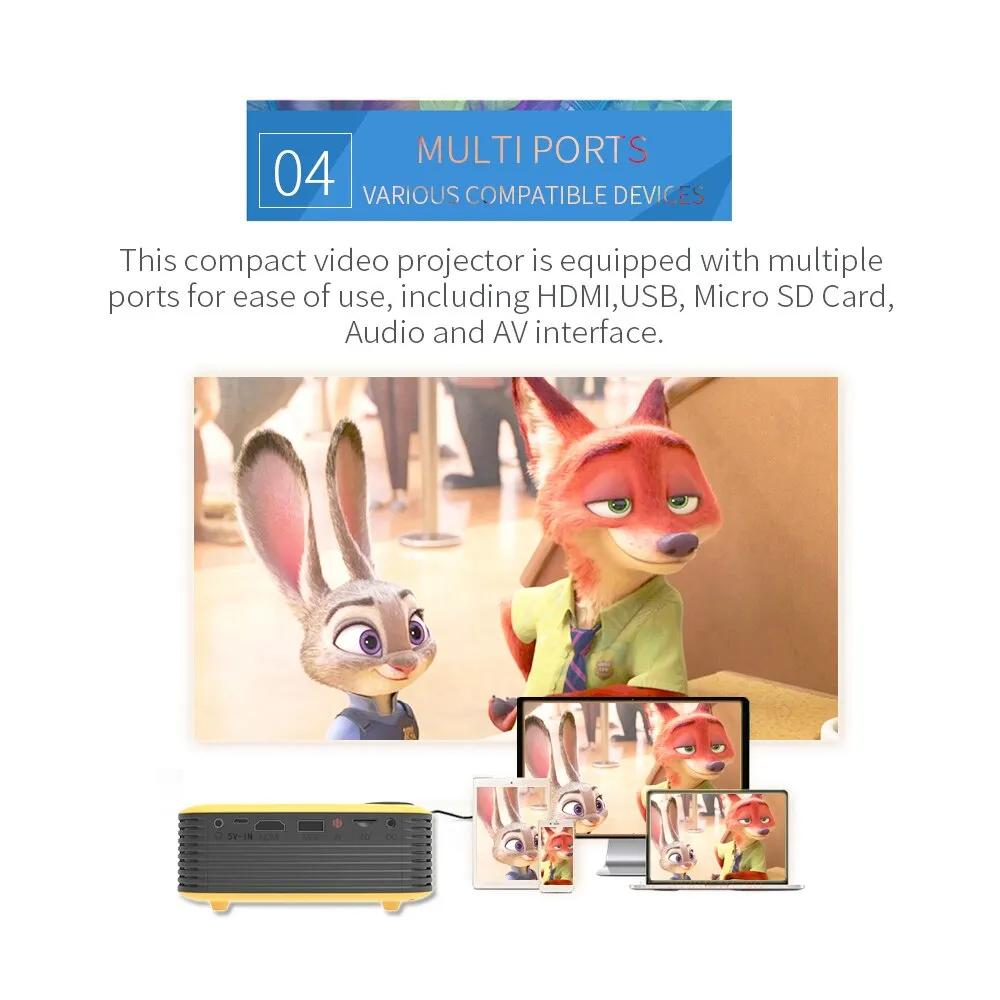 Its portability, bright visuals, and versatile use make it the perfect choice for both home entertainment and on-the-go viewing. Choose the Mini Portable Projector for a reliable, high-quality, and enjoyable viewing experience.