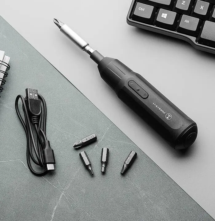 Featuring a rechargeable battery, this screwdriver ensures you always have power when you need it, and the USB charging capability makes recharging easy and accessible. Its ergonomic, anti-slip handle allows for comfortable, extended use, and the forward/reverse control provides flexibility for both tightening and loosening tasks. The compact size makes it easy to store in toolboxes, bags, or drawers, so it’s ready whenever you need it.