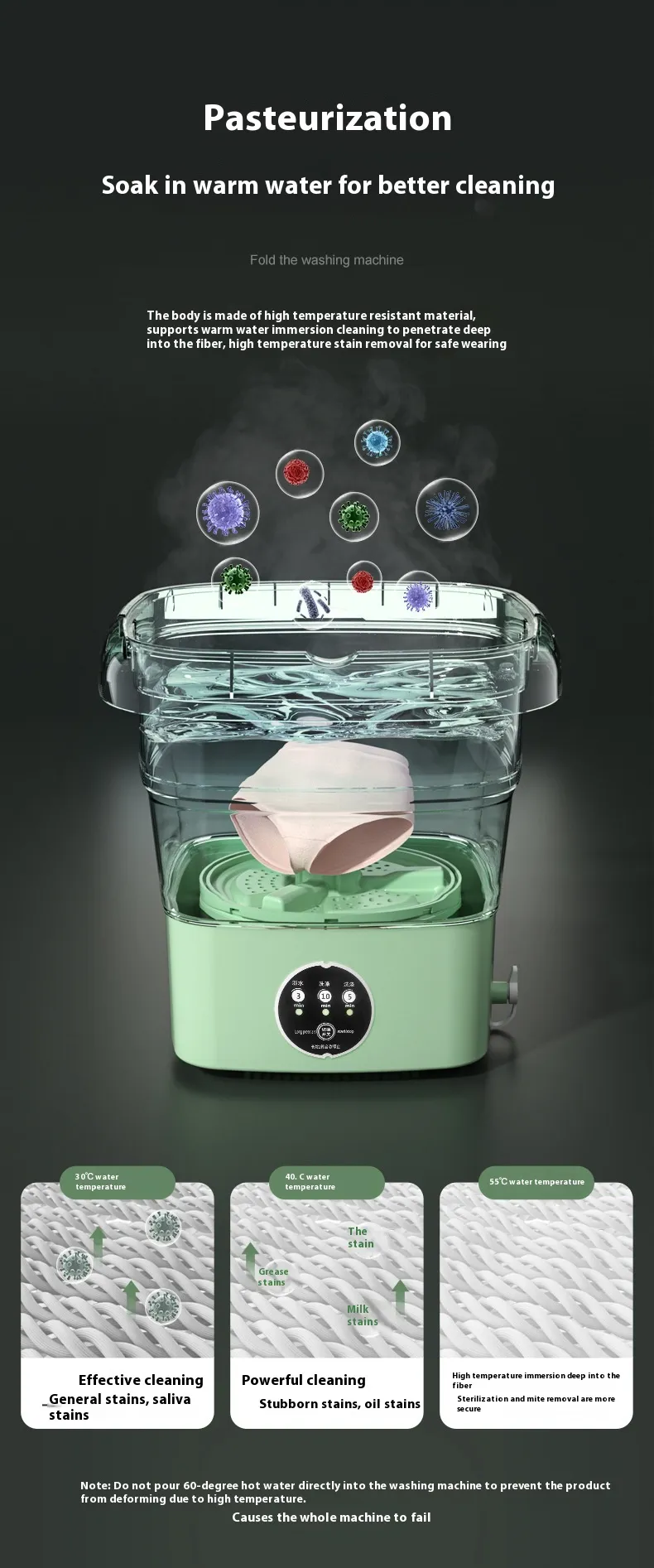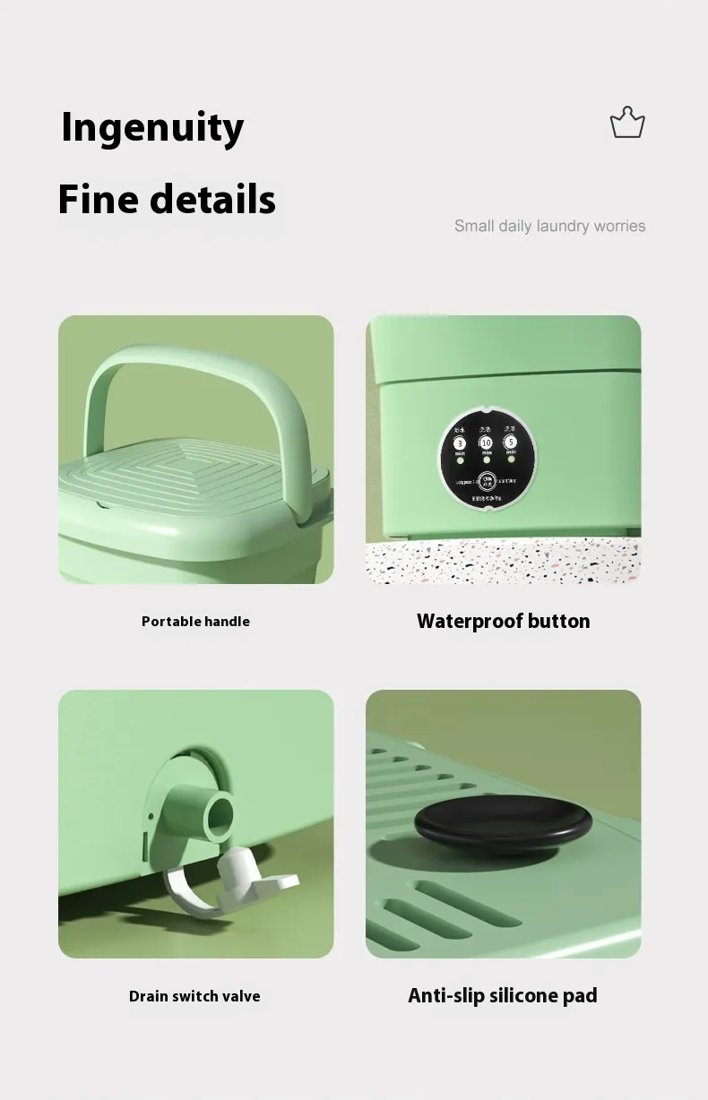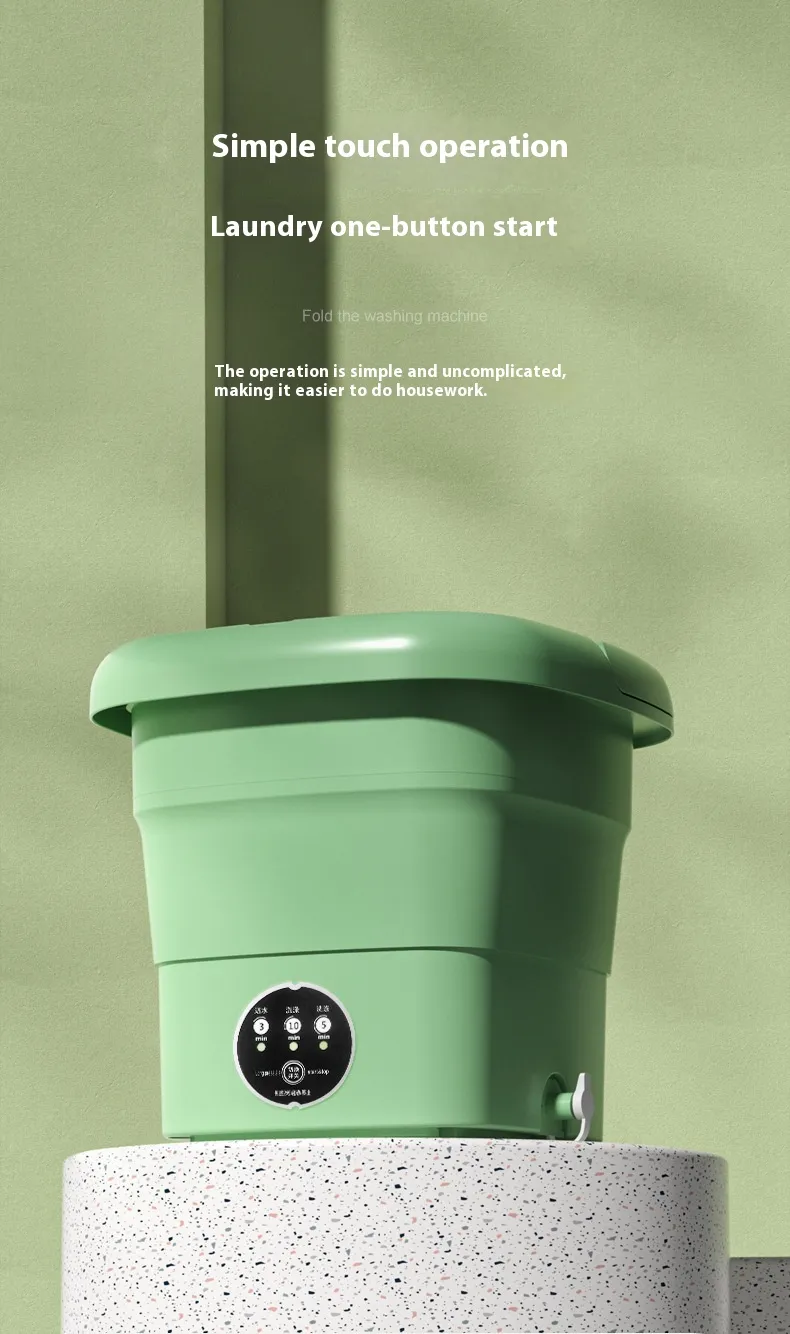 The energy-saving design ensures that the mini washer uses less water and electricity, making it an eco-friendly and cost-effective solution for doing laundry.