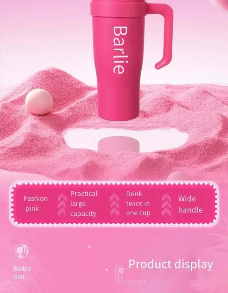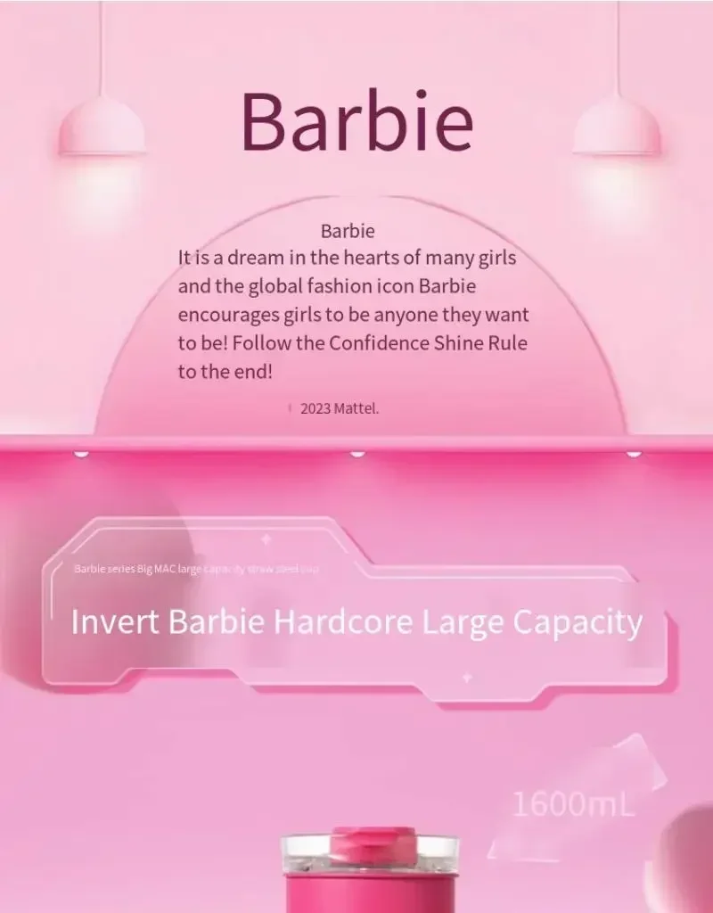 MINISO Barbie Co-Branded 1600ML Large-Capacity Stainless Steel Water Cup Thermal Insulation, Pink, Girls Water Bottle