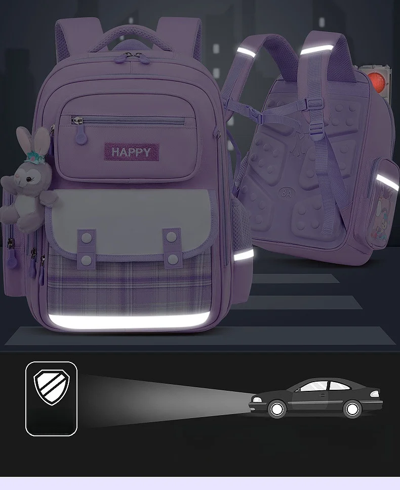 The backpack features an enchanting Kawaii StellaLou design that captures the playful and cute essence of Disney characters. The vibrant colors and detailed cartoon print make the bag visually appealing and fun for students of all ages. The high-quality, waterproof material enhances the bag's durability and ensures that it can withstand daily wear and tear. The design is complemented by functional elements such as safety reflectors that enhance visibility, adding both a practical and stylish touch.