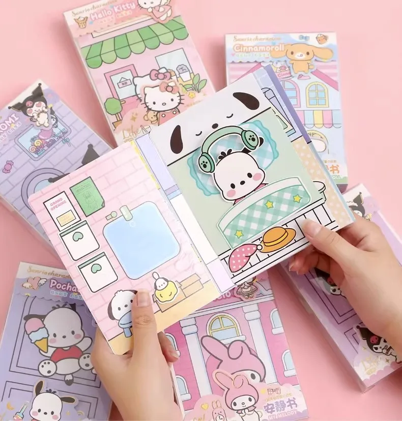 MINISO Sanrio Girl Quiet Book Kuromi, Cinnamoroll, My Melody, and Pochacco DIY Material Children's Toys for Development and Hands-On Ability