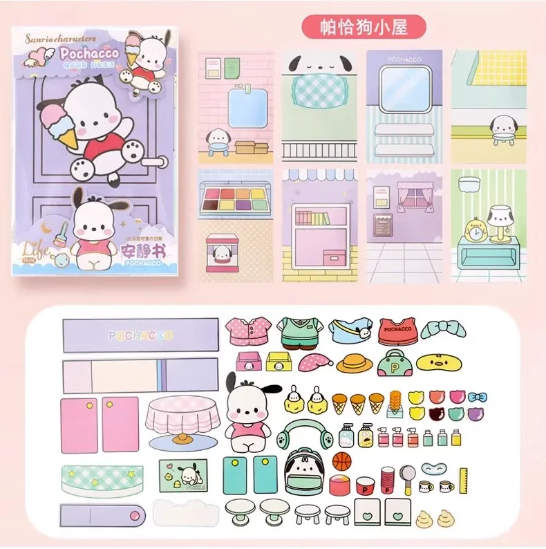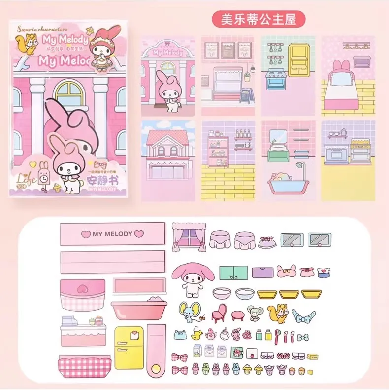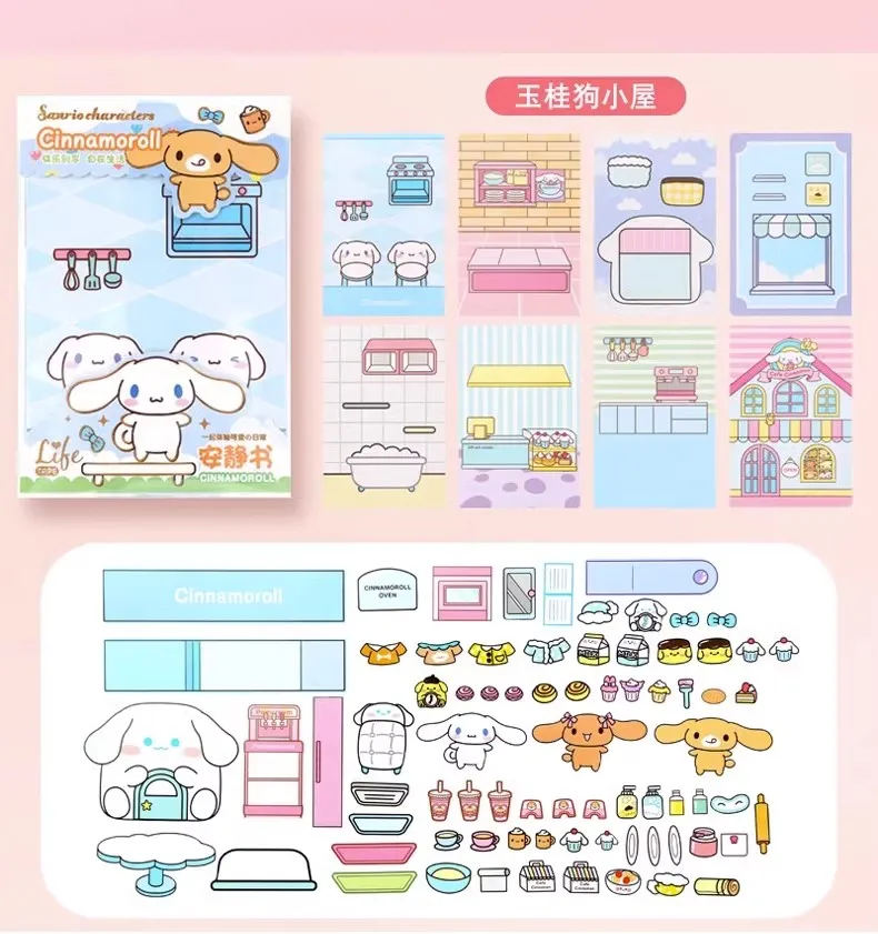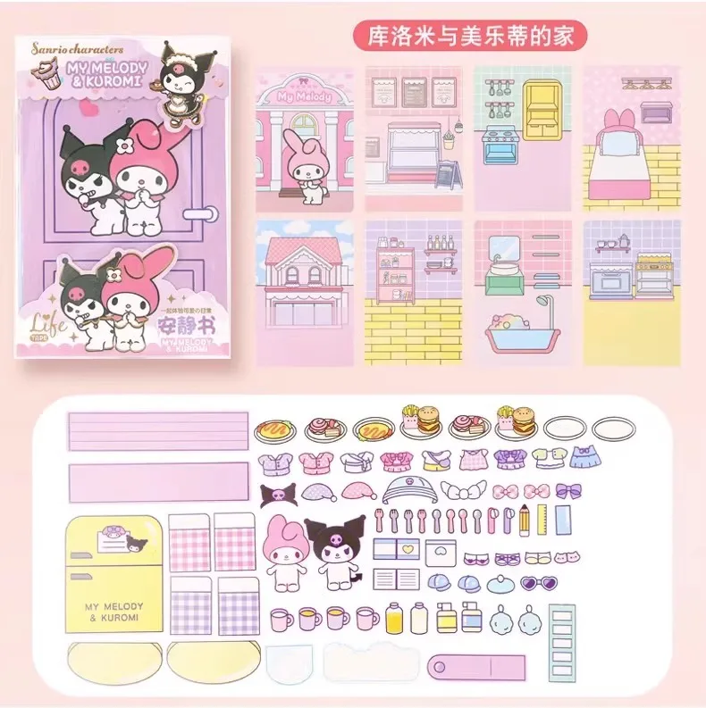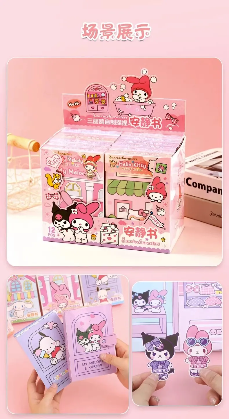 MINISO Sanrio Girl Quiet Book Kuromi, Cinnamoroll, My Melody, and Pochacco DIY Material Children's Toys for Development and Hands-On Ability