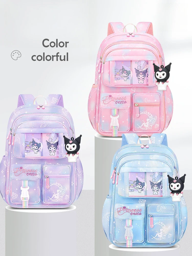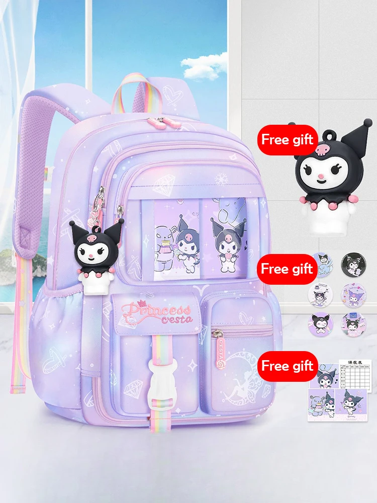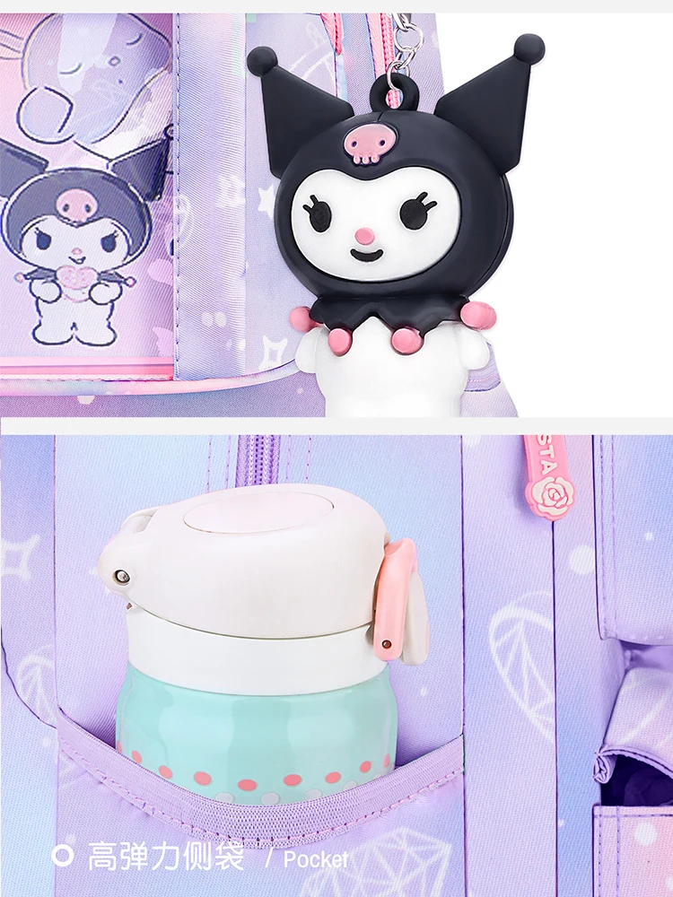 MINISO Sanrio Kuromi Student Backpack Kawaii Reduce Burden Protect Spine Kids Schoolbag, Cute Cartoon Light Book Bag, Girl Gift